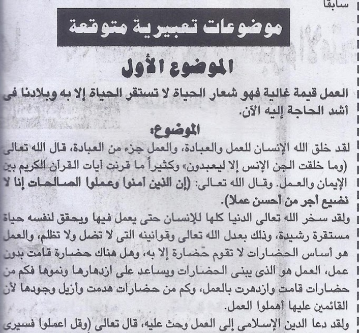 موضوع التعبير المتوقع للثانوية العامة ملزمتي