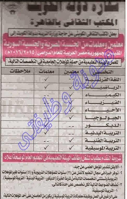 اعلان سفارة الكويت بالقاهرة عن وظائف مدرسين ومدرسات في الكويت بوزارة التعليم الكويتيه 2017 منشور في جريدة الجمهورية 12 03 2016